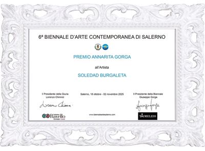 " La victoria de Soledad Burgaleta en la sexta edición de la BACS tiene un valor que desborda los límites de la propia bienal o del premio en sí. Es la afirmación, en un momento histórico dominado por el entusiasmo y la angustia hacia la inteligencia artificial y sus aplicaciones artísticas, de que existe una dimensión del hacer artístico que permanece irreductiblemente humana. Una dimensión que tiene que ver con el encuentro, con la relación, con la capacidad de dejarse conmover por el otro y de transformar esa emoción en forma expresiva. " -Italian Art Journal